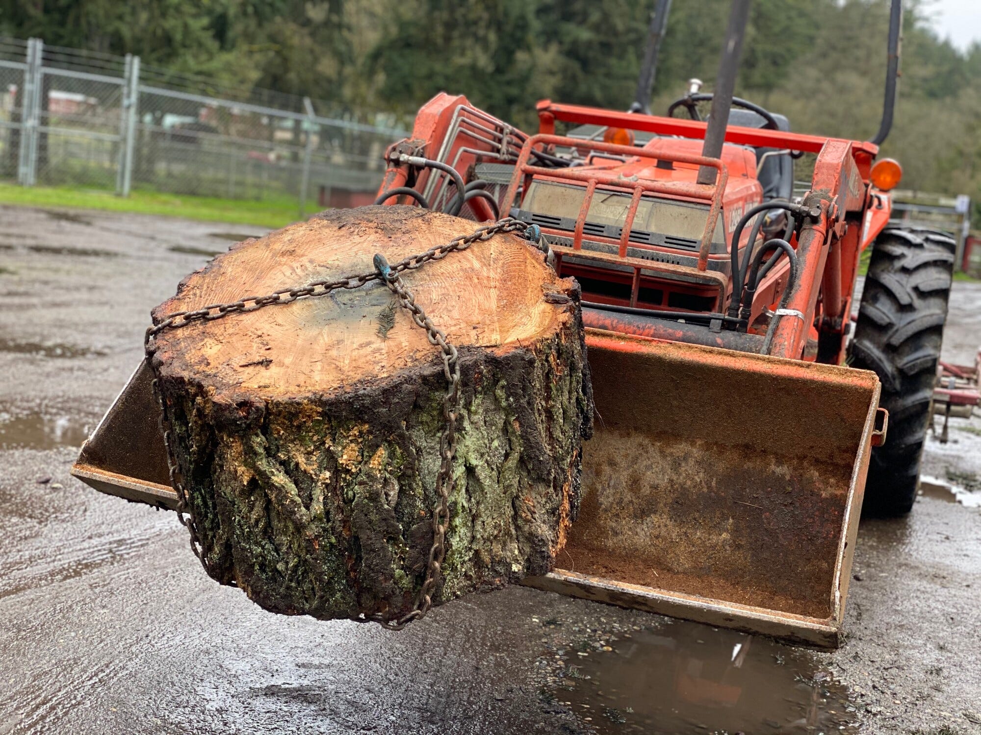 When a tree falls, or has to be cut, stumps make for an aesthetically pleasing mounting block. Their size and weight provide a very stable a stable base, if cut at an angle which creates a level surface in relation to the ground. However, they are anything but slip resistant, and become extremely slick with exposure to weather conditions.
